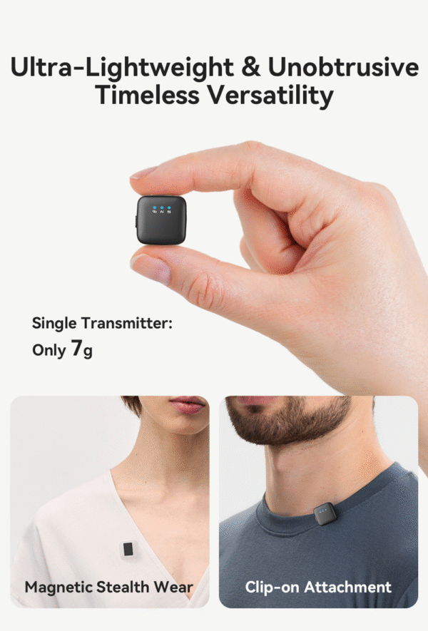 Micrófonos mini KA02, compactos pero potentes, con un peso de solo 7 g para una experiencia de uso sin peso.